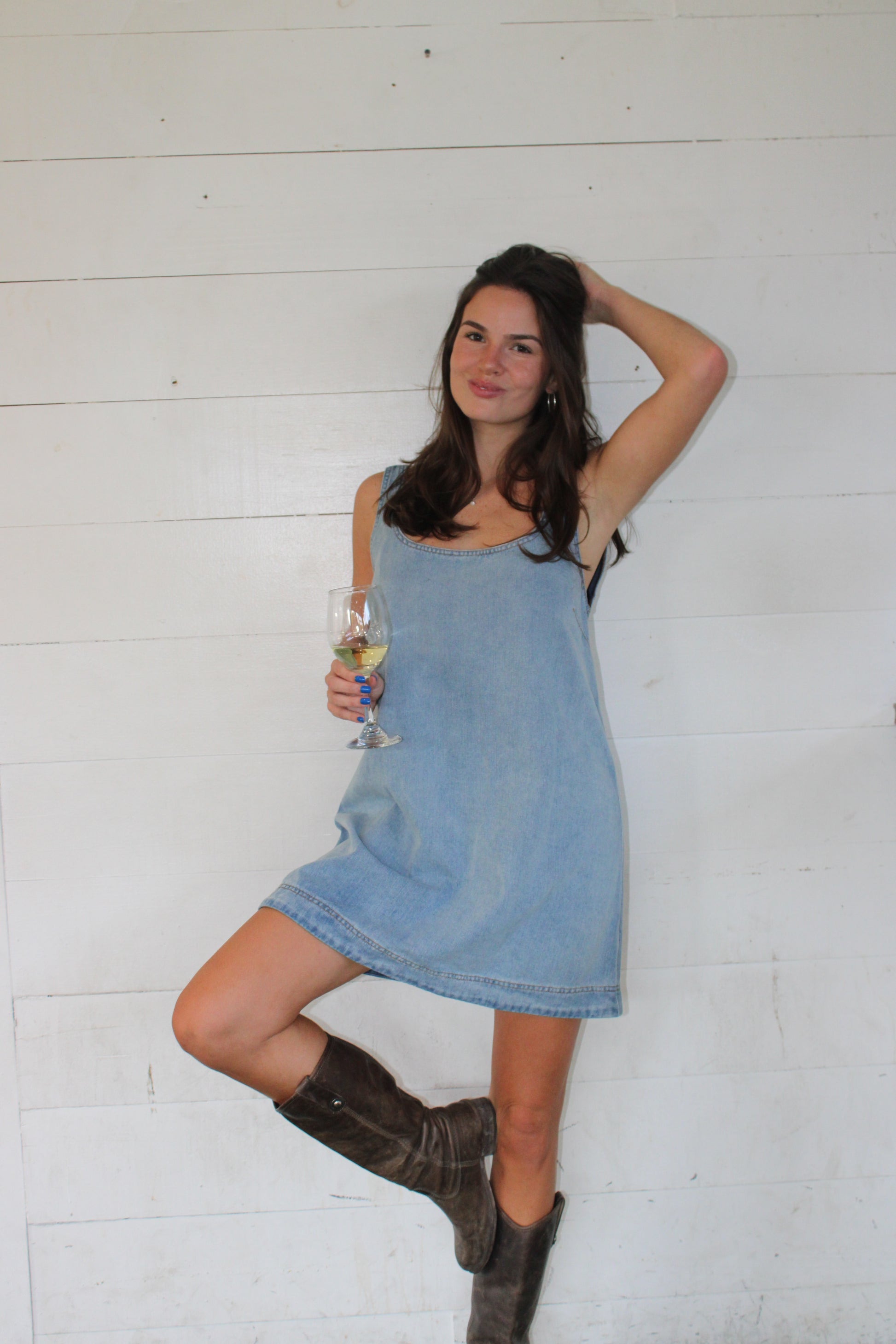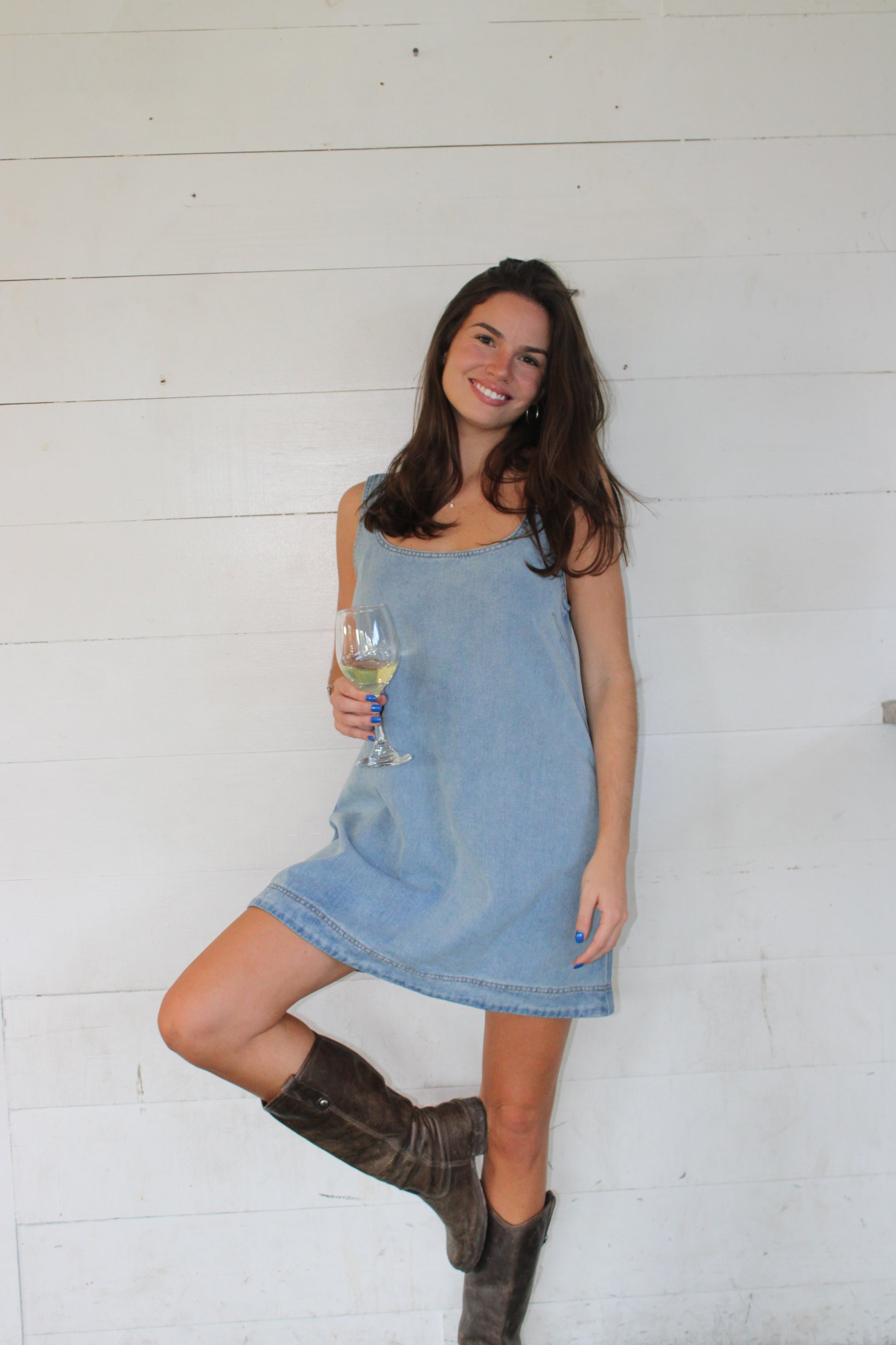 Denim Colorblock Shift Mini Dress The Denim Colorblock Shift Mini Dress puts a fresh spin on a classic look. Featuring two-toned colorblock denim and a relaxed shift fit, this mini dress blends casual cool with modern edge. Its clean silhouette and mini length make it easy to style for any laid-back day or weekend outing.
